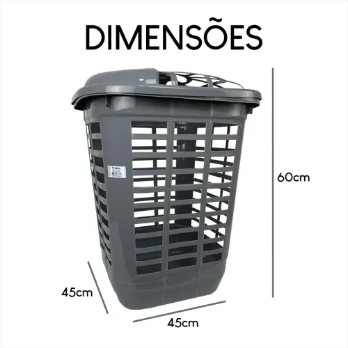 Cesto Telado Roupa Plástico Grande Vazado 60lts Tampa Cor Cinza Quadrado Telado