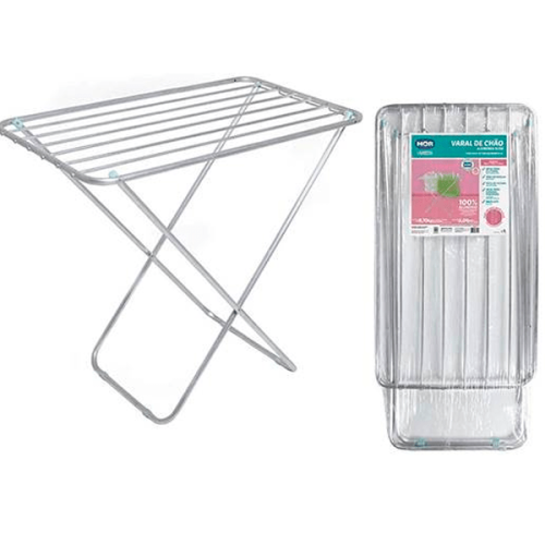As peças plásticas em polipropileno, incluindo ponteiras nos pés, ajudam a proteger o chão e facilitam o manuseio e transporte. Depois do uso pode ser dobrado e guardado em qualquer cantinho. A versatilidade e o acabamento permitem adaptação em qualquer estilo de lavanderia ou varanda.