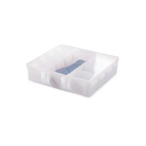 Com nove divisórias internas. Dimensões (Comp x Larg x Alt): 18,5x17,7x4,8 cm