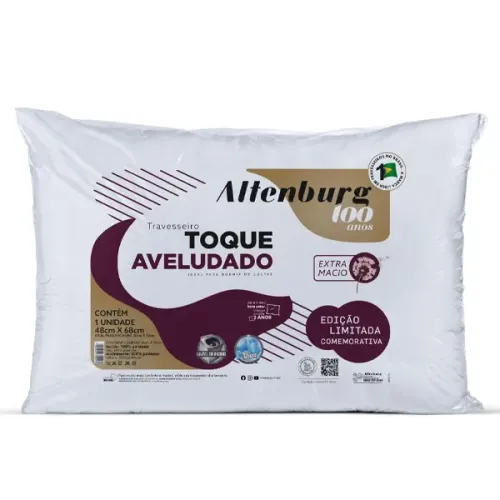 O Travesseiro Altenburg Toque Aveludado 48x68cm foi feito para quem busca noites de sono mais confortáveis, com toque macio e aconchegante. O enchimento com fibras de poliéster proporciona suporte médio, ideal para quem prefere um travesseiro nem muito alto nem muito baixo, alinhando melhor a cabeça e o pescoço.