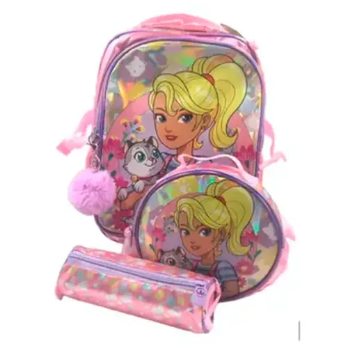 Kit Mochila Carrinho + Lancheira + Estojo Stylus Boneca Debie